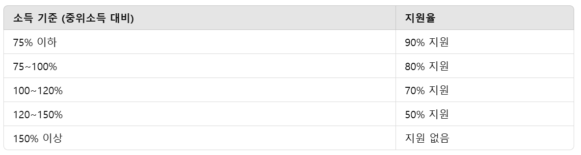 소득 구간별 정부 지원율은 다음과 같습니다.